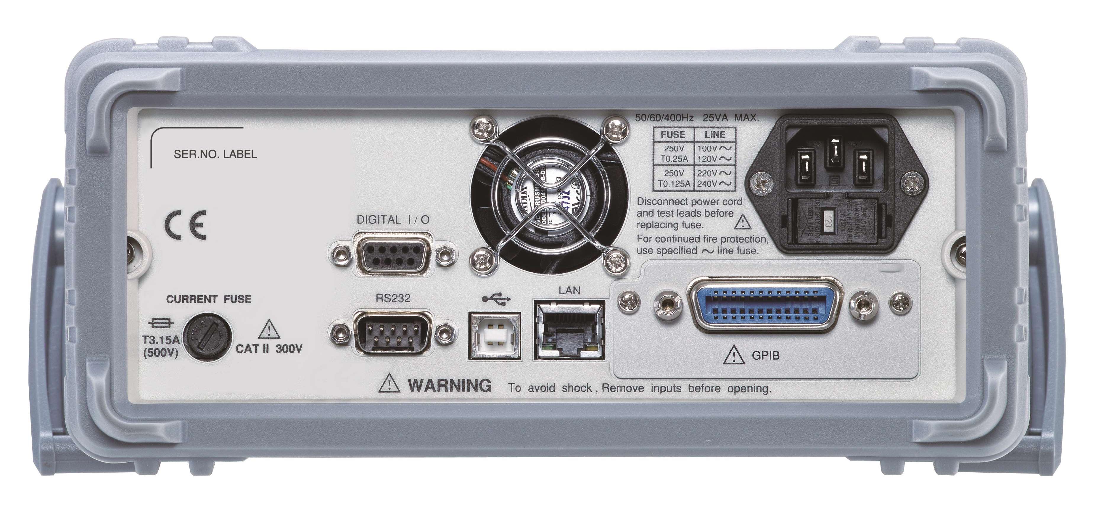 For system integration applications, the GDM-906X series is equipped with RS232, USB and LAN as standard communications interfaces, and GPIB is an option (can be installed by customer) to meet the requirements of different system integrations. Data transfer rate is up to 10k readings per second (GDM-9061) or 1k readings per second (GDM-9060) via USB/LAN/GPIB interfaces.